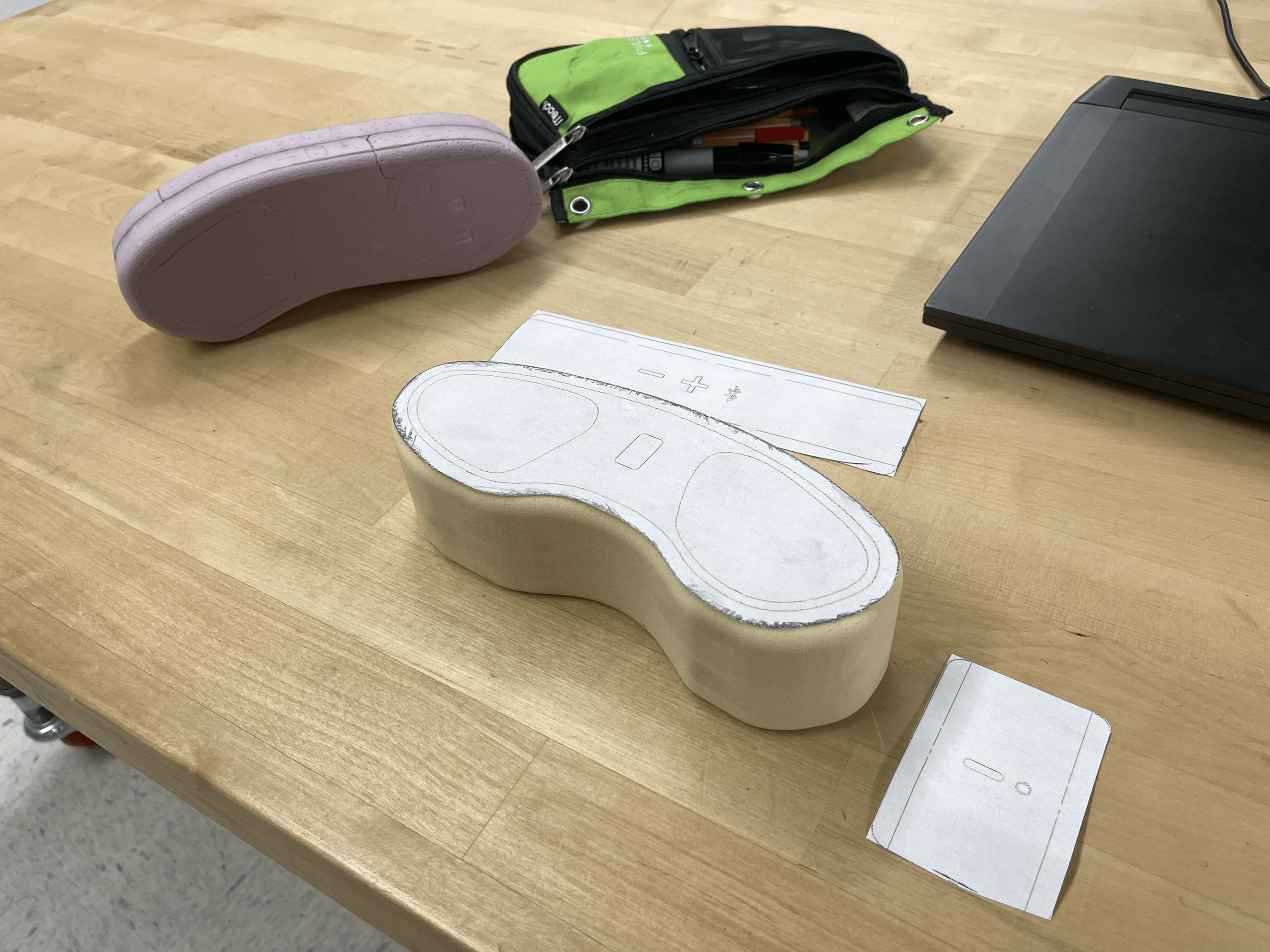 The physical modeling process began with low-fidelity mock-ups used to quickly explore scale, proportions, and overall presence. These early models helped refine the key dimensions and ergonomic relationships of the product before moving into high-fidelity fabrication. Once the proportions were finalized, a high-fidelity model was produced from PU foam, allowing the form, surface transitions, and visual weight of the design to be evaluated in real space and under real lighting conditions.